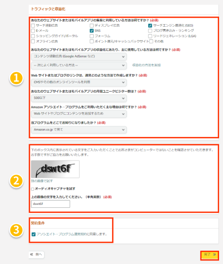最期に「アソシエイト・プログラム運営規約」をクリックし規約内容を読み、問題なければチェックボックスにチェックを入れ、「完了」ボタンをクリックする。
