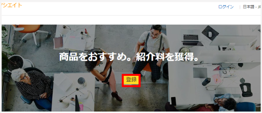 ① Amazonアソシエイト(https://affiliate.amazon.co.jp/)にアクセスし、「登録」ボタンをクリックする。