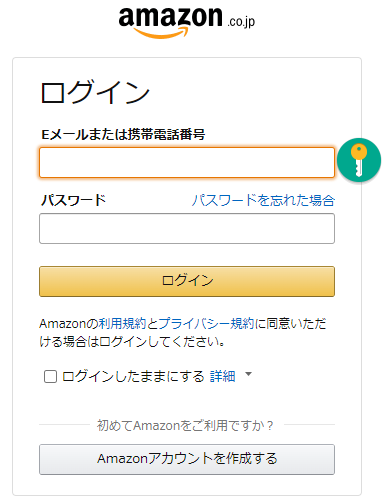 ※Amazonアカウントをまだ持っていない場合は、「Amazonaアカウントを作成する」をクリックし、先ずアカウント作成してください