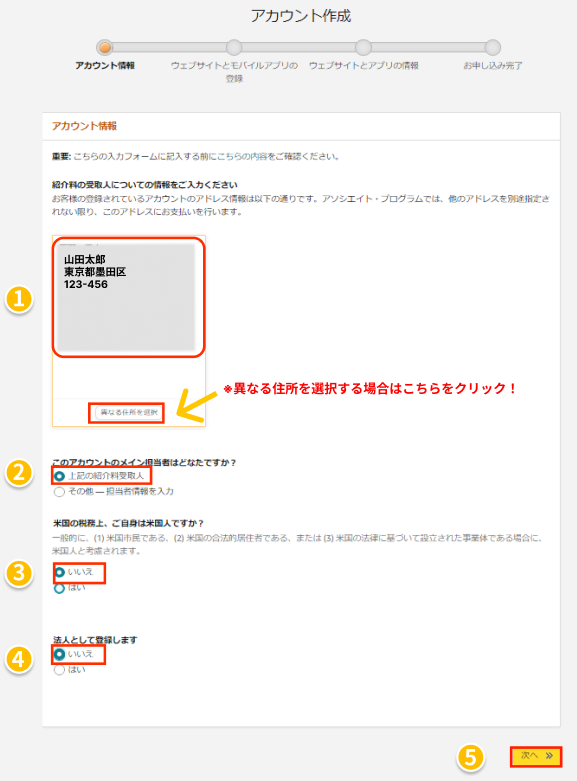 - 2.アカウント情報を入力する