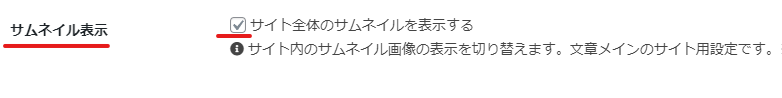 サムネイル表示のサイト全体のサムネイルを表示するにチェックが入っているか確認してください。